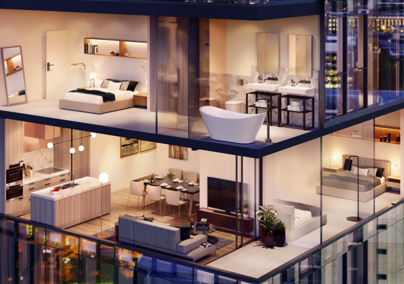 • Luxury resort style amenities such as concierge, Gym, Yoga Studio, Library lounge, Private dining space, outdoor spa, rooftop sky terrace with BBQ, private wine cellar, Sauna & Steam room, in house pet wash and resident’s shared Tesla car